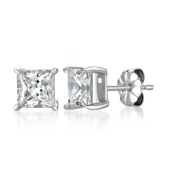Solitaire Princess Stud Earrings Finished in Gold 3.0 Carat